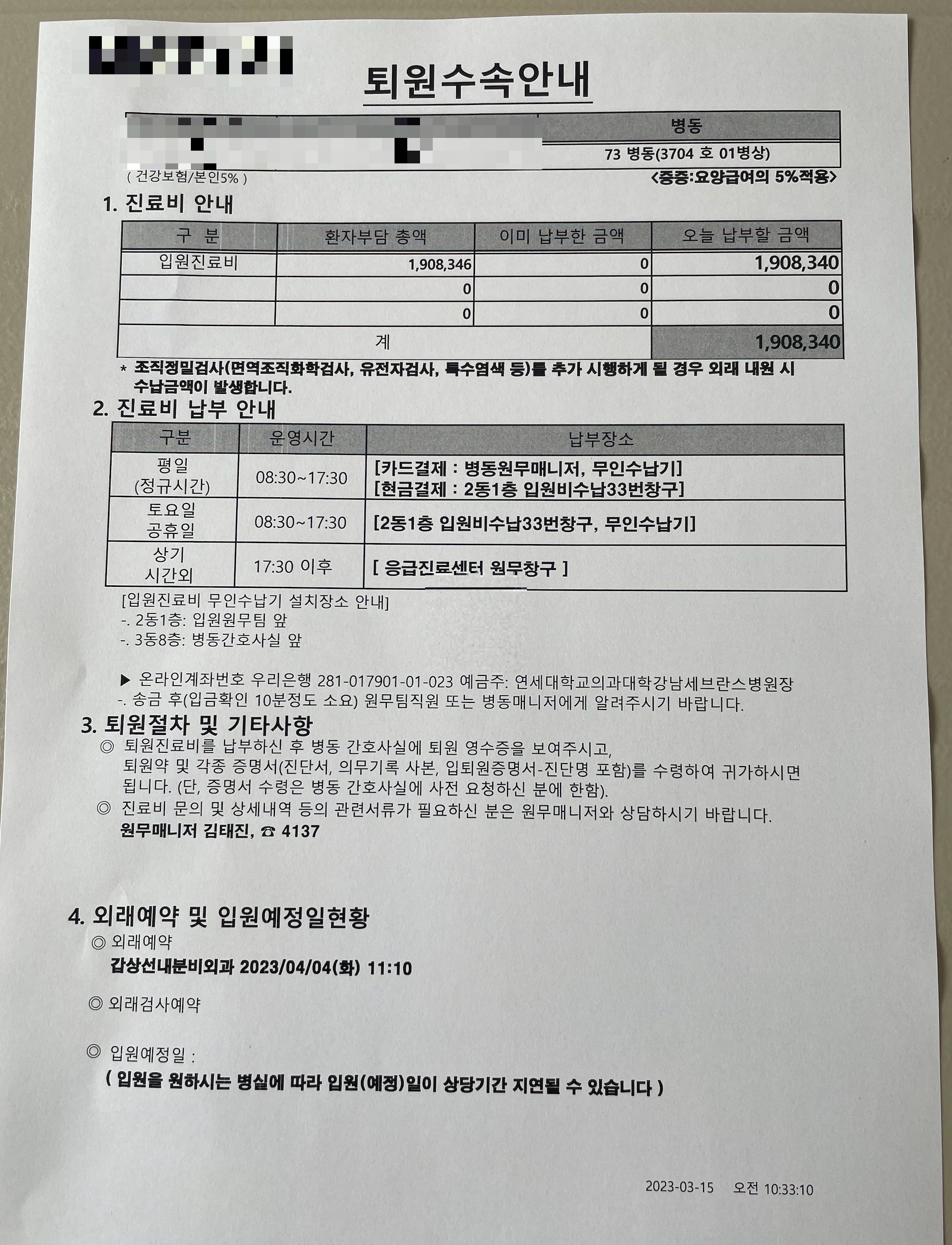강남세브란스병원 : 갑상선 암 퇴원 준비
