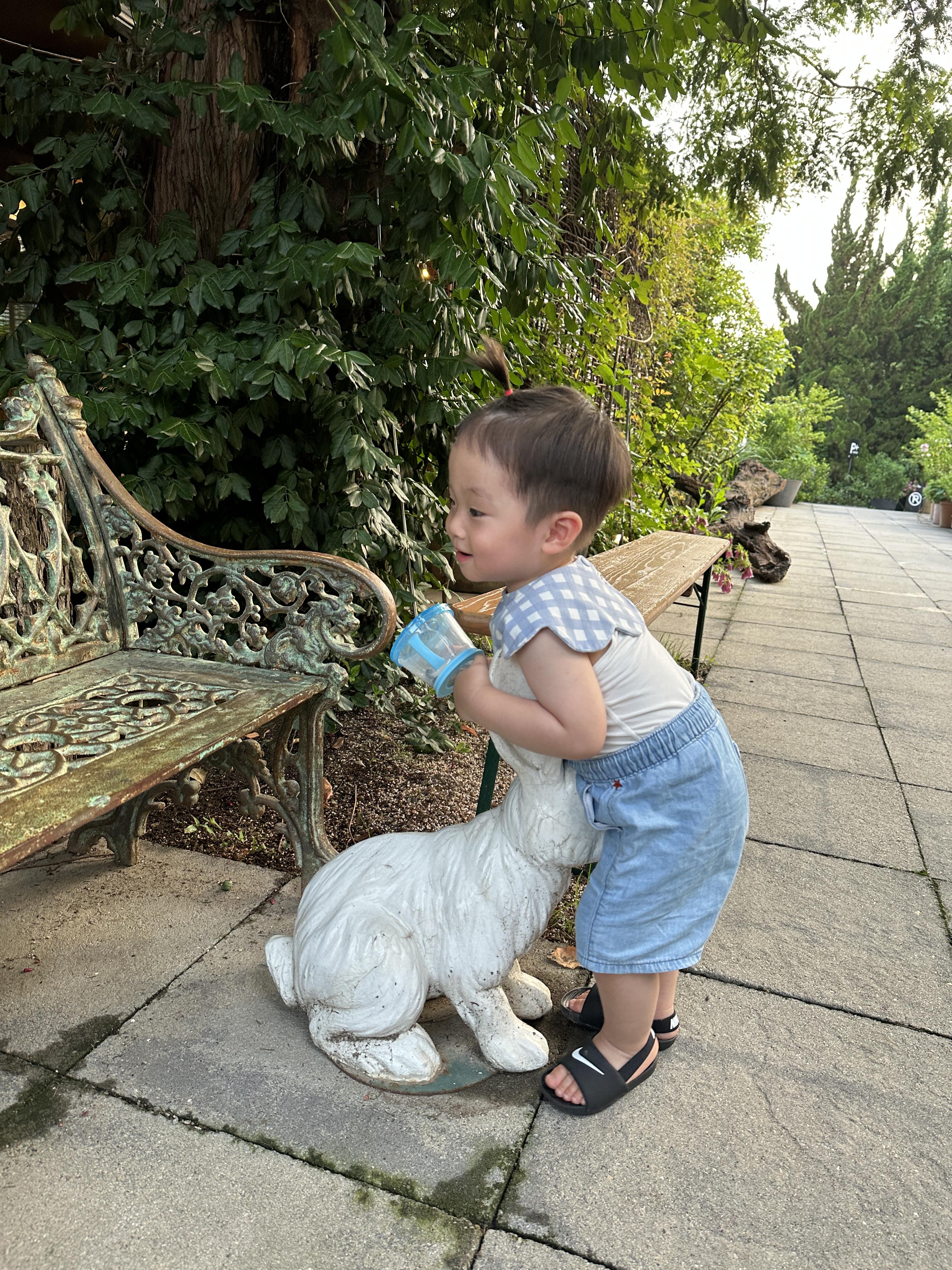 바깥쪽 토끼 오브제에 관심이 많은 아가들 요즘 주 관심사인 멍멍, 토끼, 짹짹 모두 있는 마이알레빌리지 ㅋ 한 동안 토끼 앞에서 이리저리 쓰다듬고 만지고 뽀뽀?! 까지.,,,, ㅋㅋㅋ 텐션이 올라가시는 중