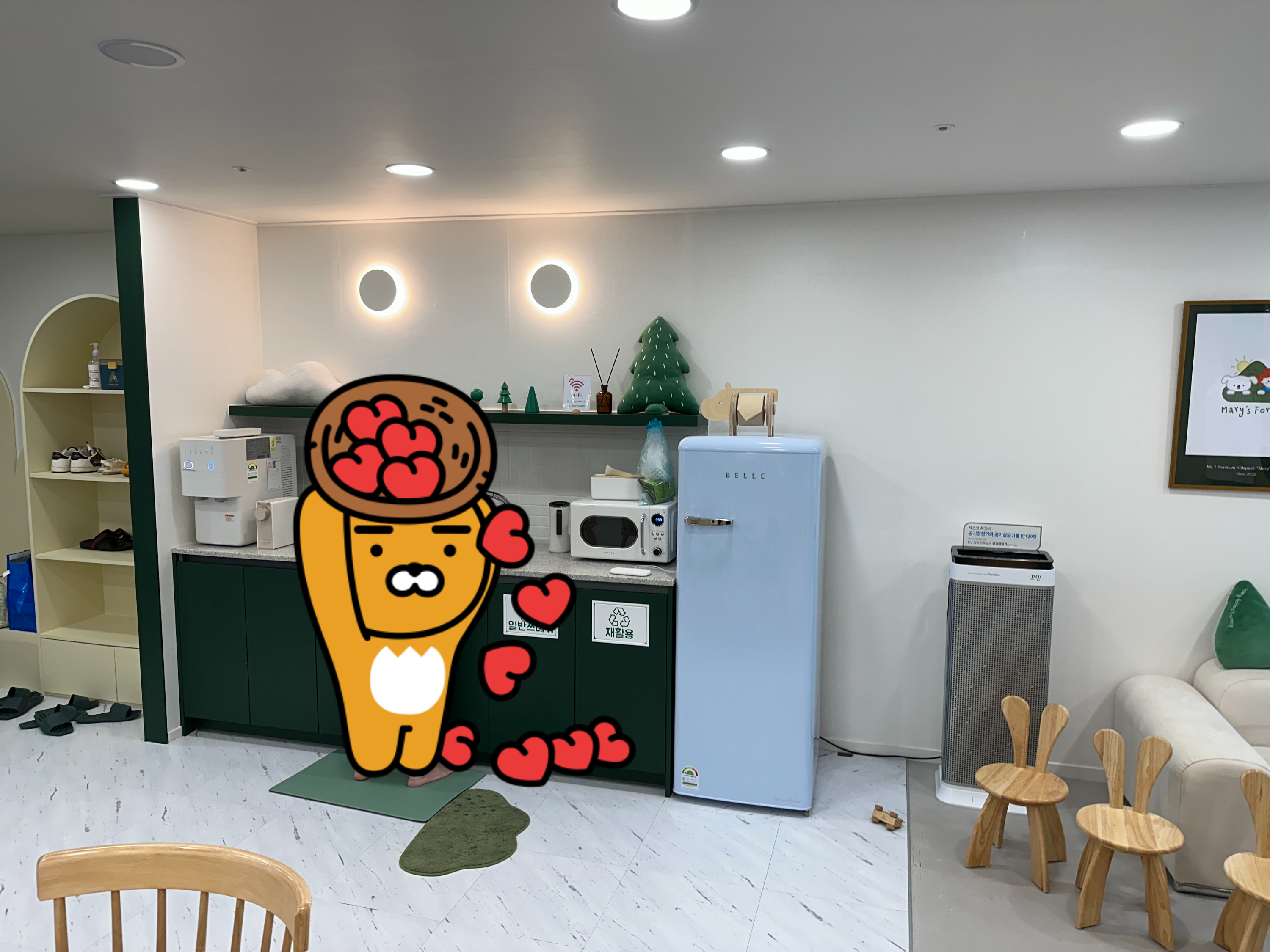 메리스포레스트는 공기청정기, 소파, 냉장고, 싱크대 및 각종 식기류 , 음식물 쓰레기봉투까지 잘 갖추어져 걱정이 없다!!!