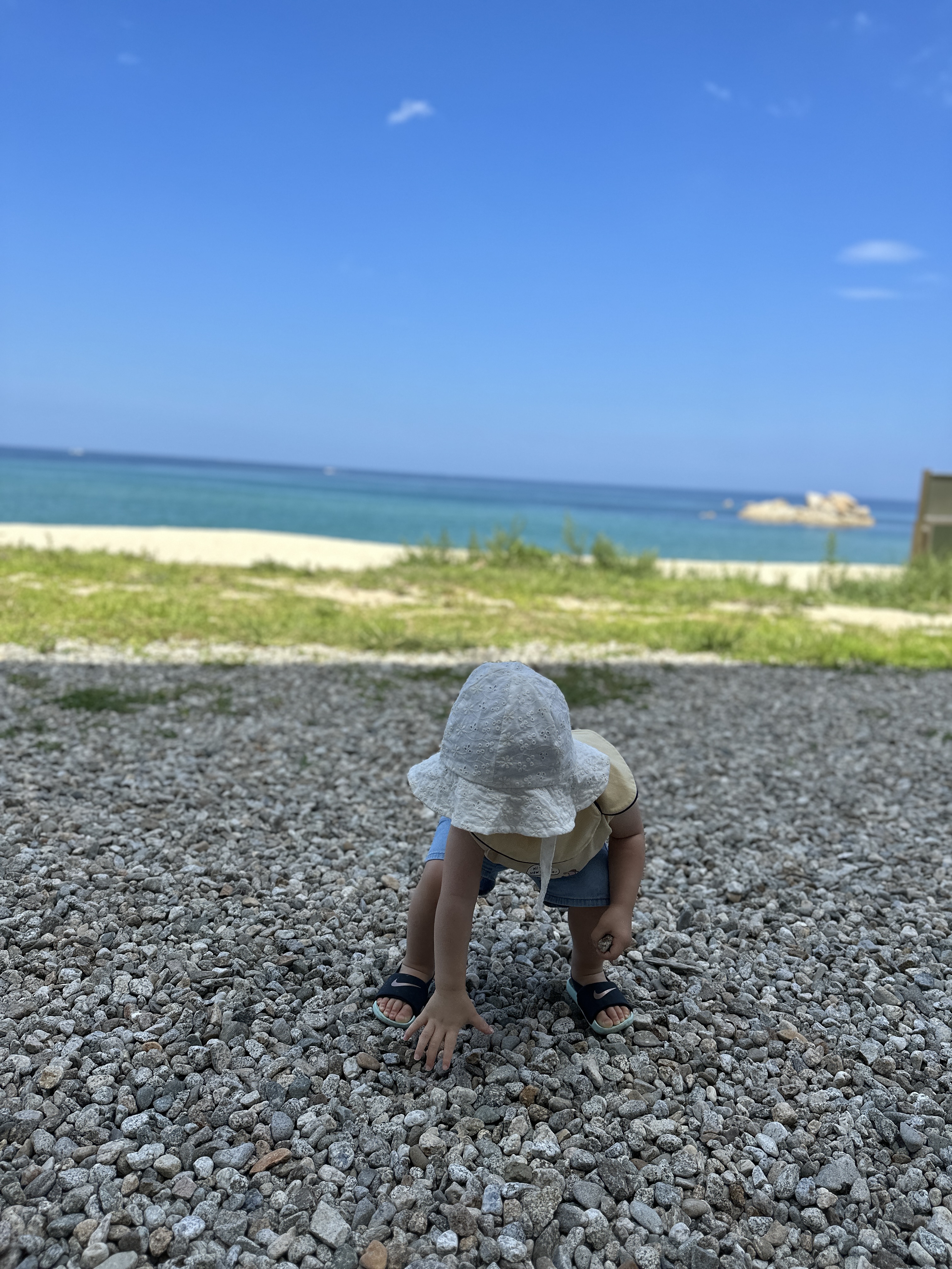 도착하자마자 아주 신이 난 남매둥이들은 해변 자갈을 만지작만지작 ;)