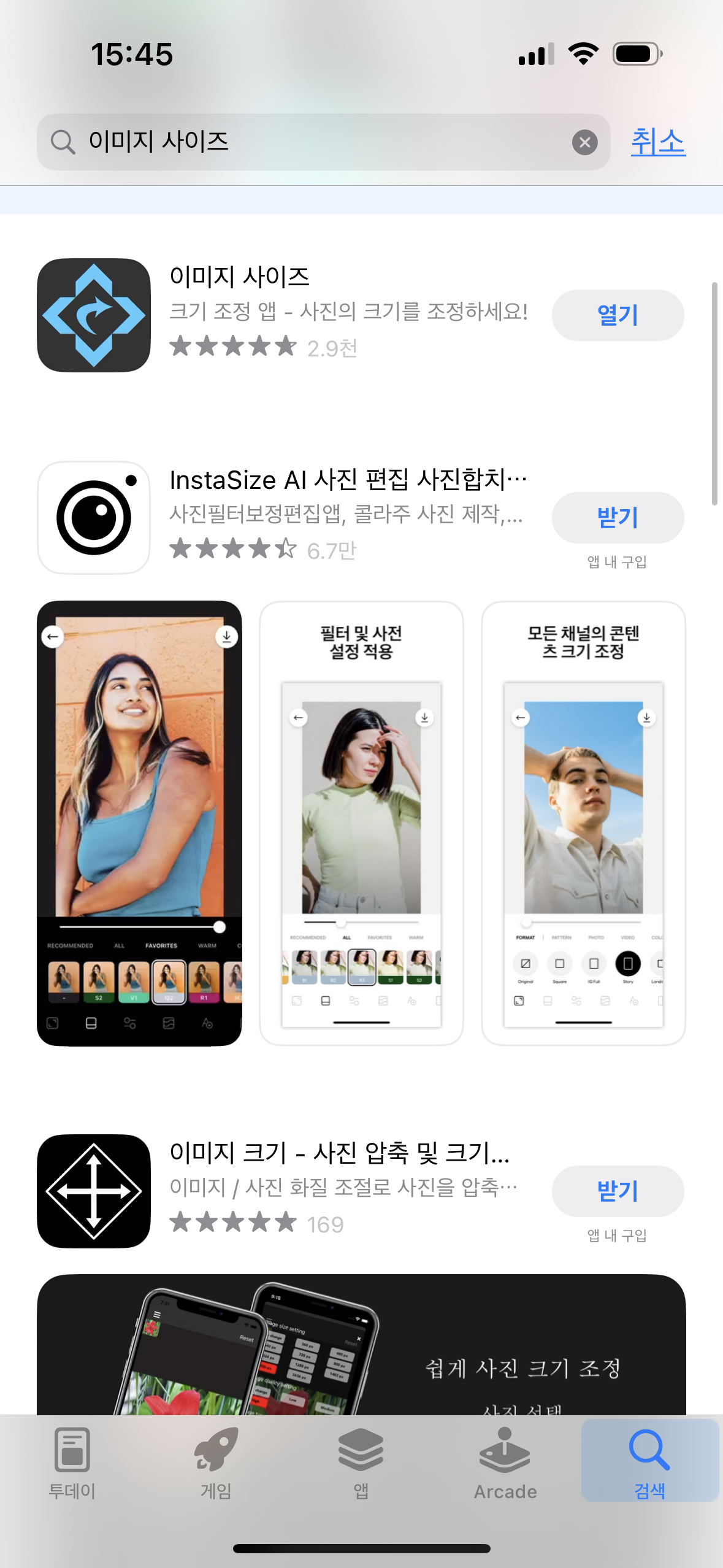 간단하게 "이미지 사이즈"라는 앱을 다운로드하여 사진파일 사이즈와 포맷을 조정하면 해결된다.