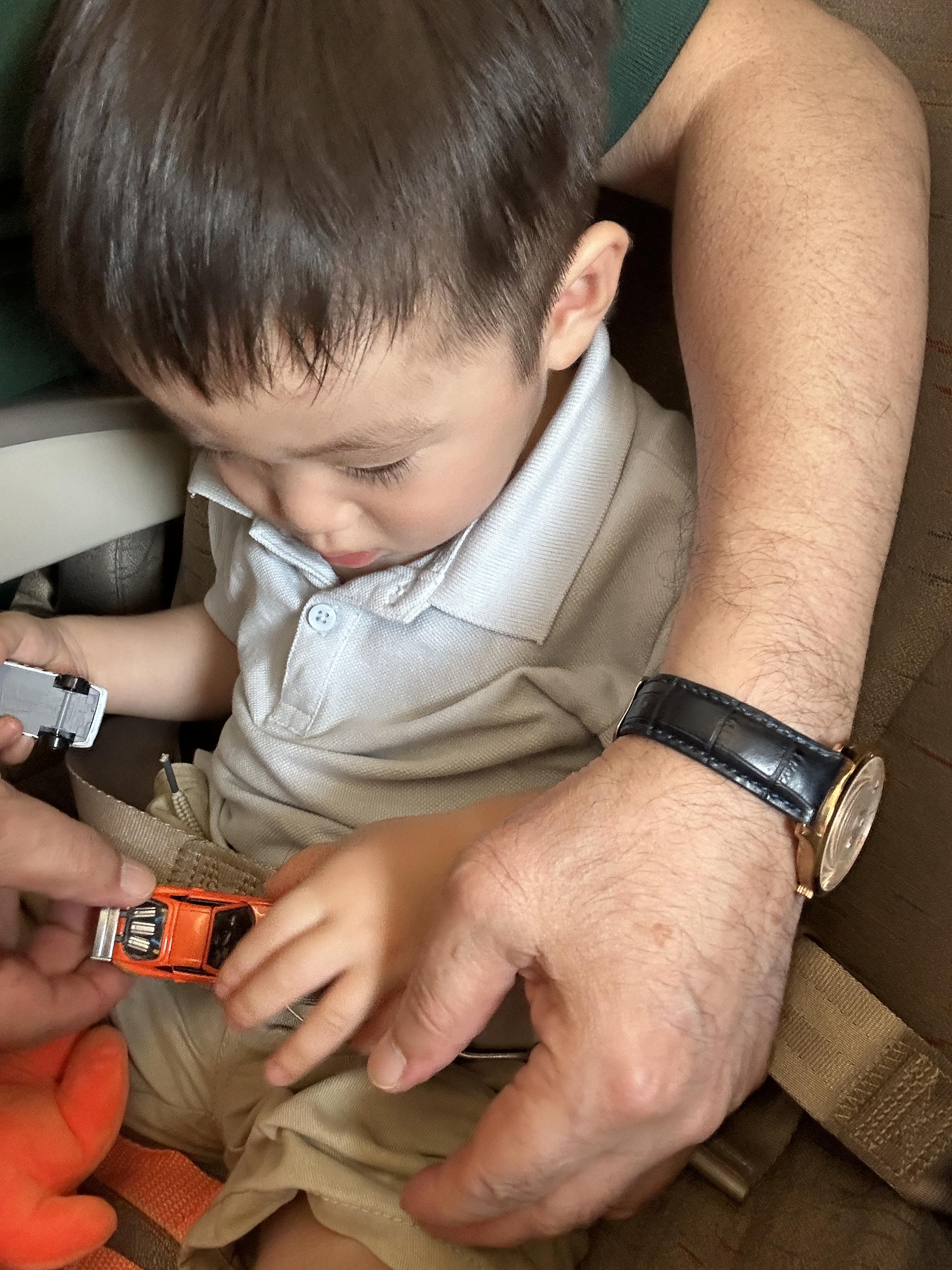 지오는 할아버지 품에 안겨 계속 빵빵 -빵빵 -
