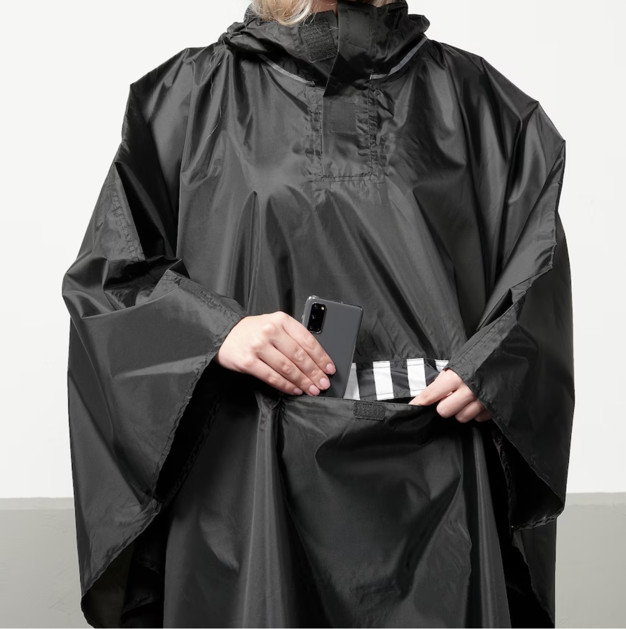 군더더기 없는 디자인의 깔끔한 판초, 사이즈도 넉넉해 보인다.